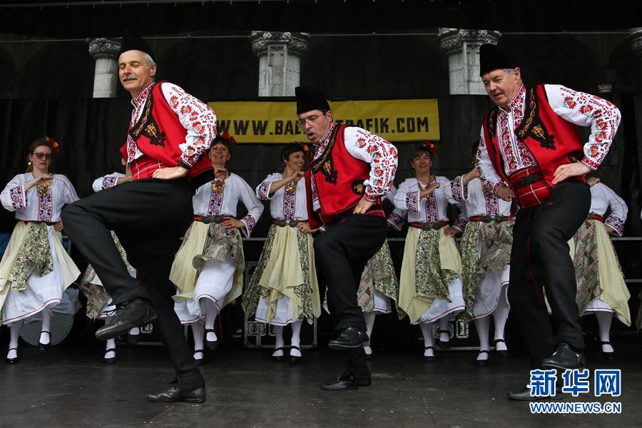 4月28日,在比利时布鲁塞尔大广场,演员表演保加利亚的民族舞蹈。 当日,来自欧洲多个国家的表演者在比利时布鲁塞尔大广场载歌载舞,庆祝为期五天的2019年巴尔干文化艺术节圆满落幕。该文化艺术节旨在用音乐、舞蹈、文学、街头艺术等方式向公众展现东南欧巴尔干半岛地区的民族文化风情。 新华社记者郑焕松摄