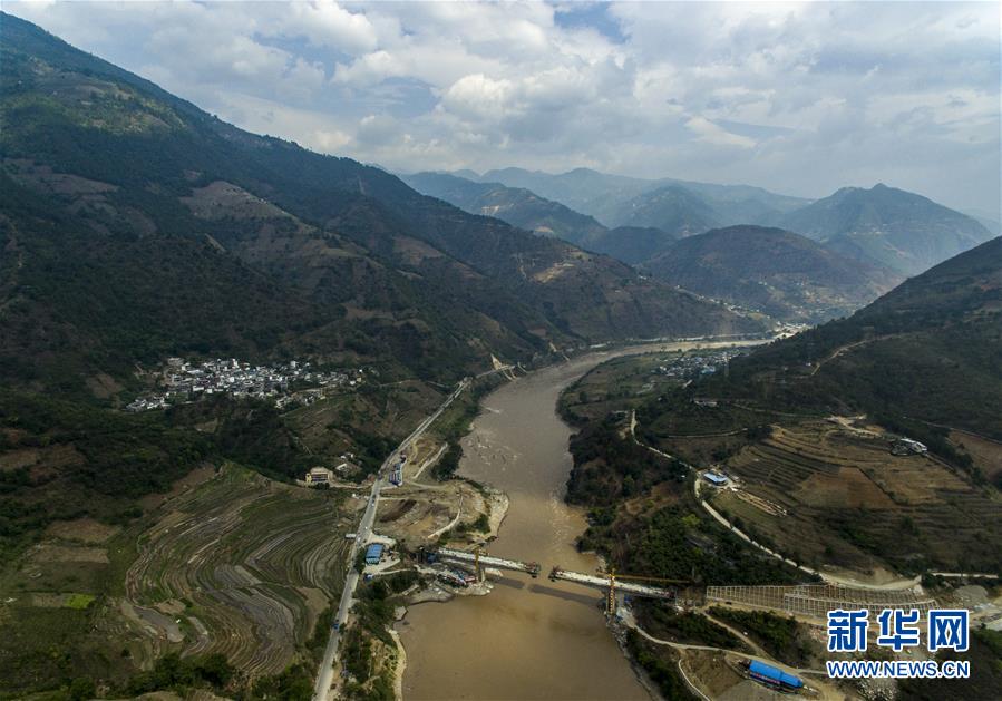 这是4月30日无人机拍摄的即将建成合龙的怒江小沙坝大桥。 新华社记者 江文耀 摄