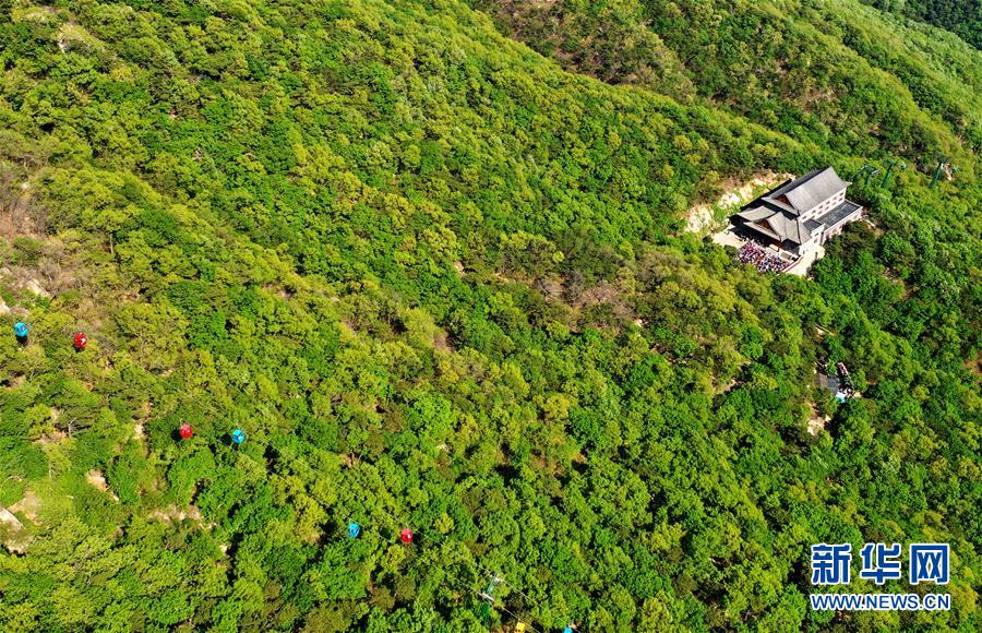 一处建筑坐落在盘山风景名胜区的森林中(5月2日无人机拍摄)。新华社记者 岳月伟 摄