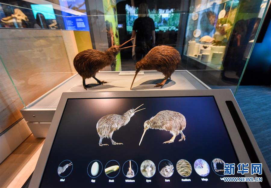 5月9日,人们在位于惠灵顿的新西兰国家博物馆自然馆内参观。 自2018年4月关闭后,耗资约800万美元,经历一年的全新设计组合,新西兰国家博物馆自然馆于5月9日重新开放。新馆展品约1200多件,除实物展品外,运用了大量声光电,虚拟和互动技术。 新华社记者 郭磊 摄