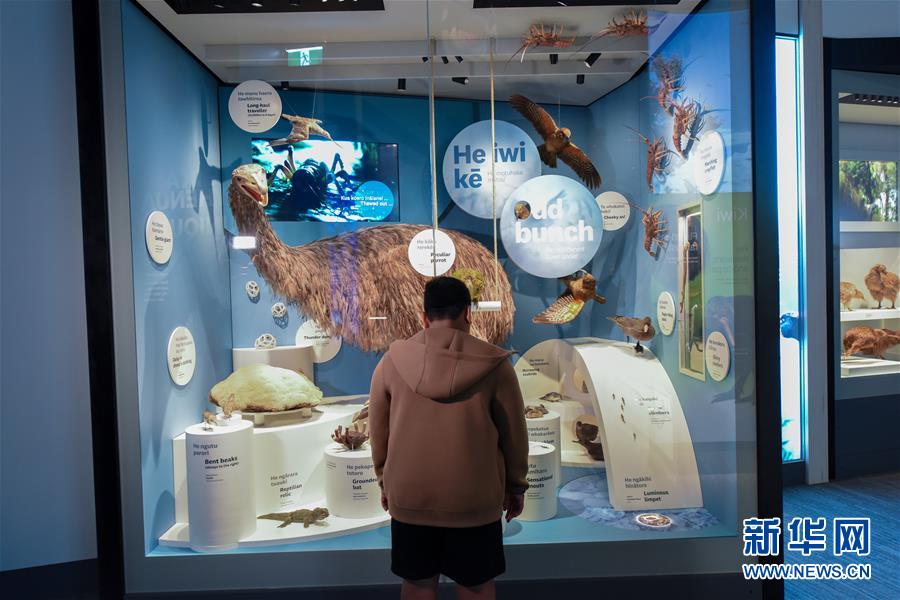 5月9日,在位于惠灵顿的新西兰国家博物馆自然馆,一名男子观看动物标本。 自2018年4月关闭后,耗资约800万美元,经历一年的全新设计组合,新西兰国家博物馆自然馆于5月9日重新开放。新馆展品约1200多件,除实物展品外,运用了大量声光电,虚拟和互动技术。 新华社记者 郭磊 摄