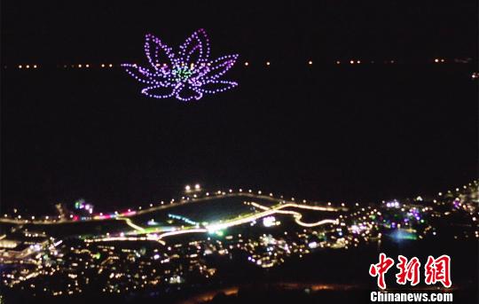 无人机在空中组成“拈花湾”。 吴彬 摄