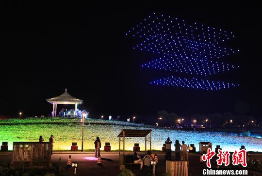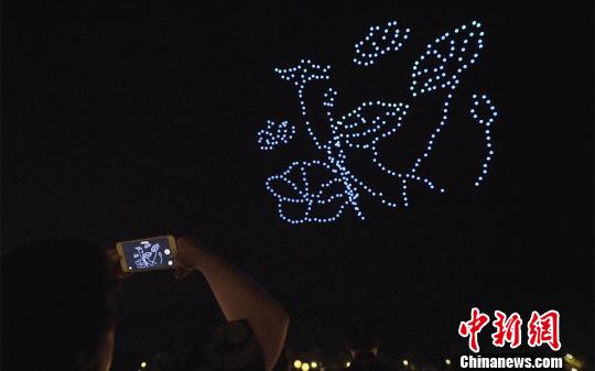 无人机灯光秀表演将连续四天上演。 吴彬 摄