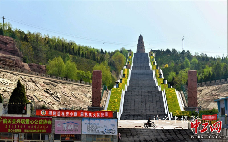 山西偏关,古称偏头关,北依长城与内蒙古清水河县接壤,西临黄河与内蒙古准格尔旗隔河相望。偏头关与宁武关、雁门关合称中华三关,是明代长城外三关之首。也是古代的边防重镇。这里保存着与明长城同一时代的文笔凌霄塔等名胜古迹。图为2019年5月10日山西偏关县明长城。工人日报-中工网许之丰摄影报道