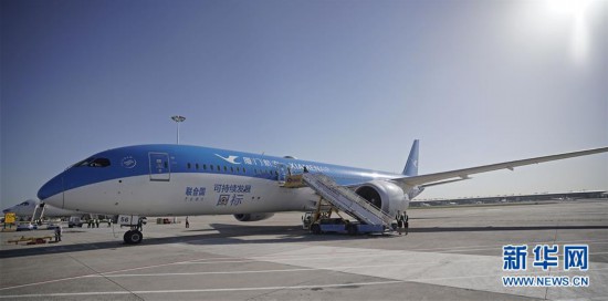 5月13日,在北京大兴国际机场,厦门航空公司一架客机准备执行试飞任务。 当日,4架大型客机依次在北京大兴国际机场跑道上平稳降落,标志着北京新机场完成首次真机验证。 新华社记者 才扬 摄