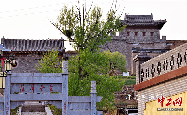 水泉堡始建于明朝成化二年(1466),地处晋蒙交通要道,地理位置十分重要,是偏关西北方的重要屏障,明代这里是镇守关口的驻军阵营。明朝于此修筑长城边堡、敌台和烽燧等设施,遇警时可迅速登城。水泉堡成为镇守红门口的驻军堡寨长城,被称“三关前哨堡”。图为2019年5月9日的偏关水泉村。(工人日报-中工网许之丰摄影报道)