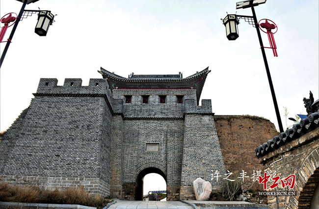 水泉堡始建于明朝成化二年(1466),地处晋蒙交通要道,地理位置十分重要,是偏关西北方的重要屏障,明代这里是镇守关口的驻军阵营。明朝于此修筑长城边堡、敌台和烽燧等设施,遇警时可迅速登城。水泉堡成为镇守红门口的驻军堡寨长城,被称“三关前哨堡”。图为2019年5月9日的偏关水泉村。(工人日报-中工网许之丰摄影报道)