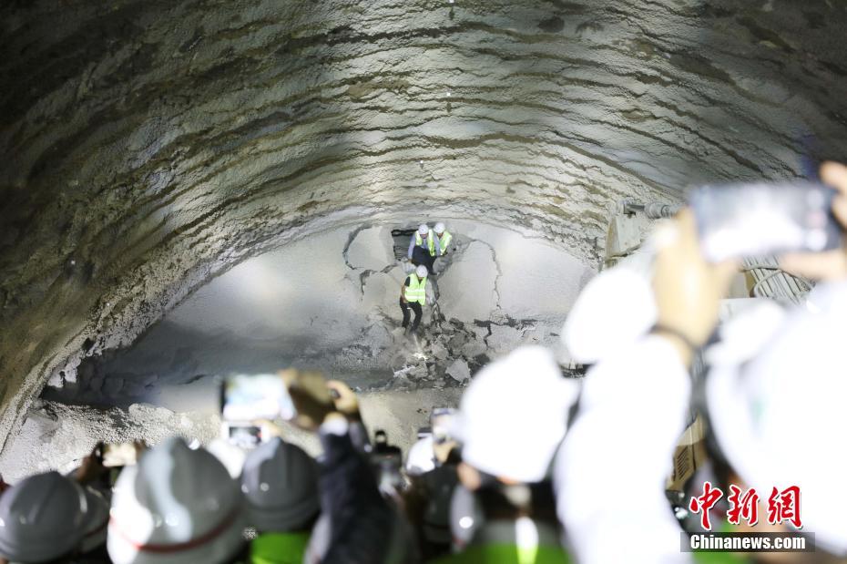 5月14日,印尼雅万高铁瓦利尼隧道贯通,成为该线路首条贯通隧道,标志雅万高铁建设进入全面提速阶段。图为隧道贯通一刻。中新社记者 林永传 摄