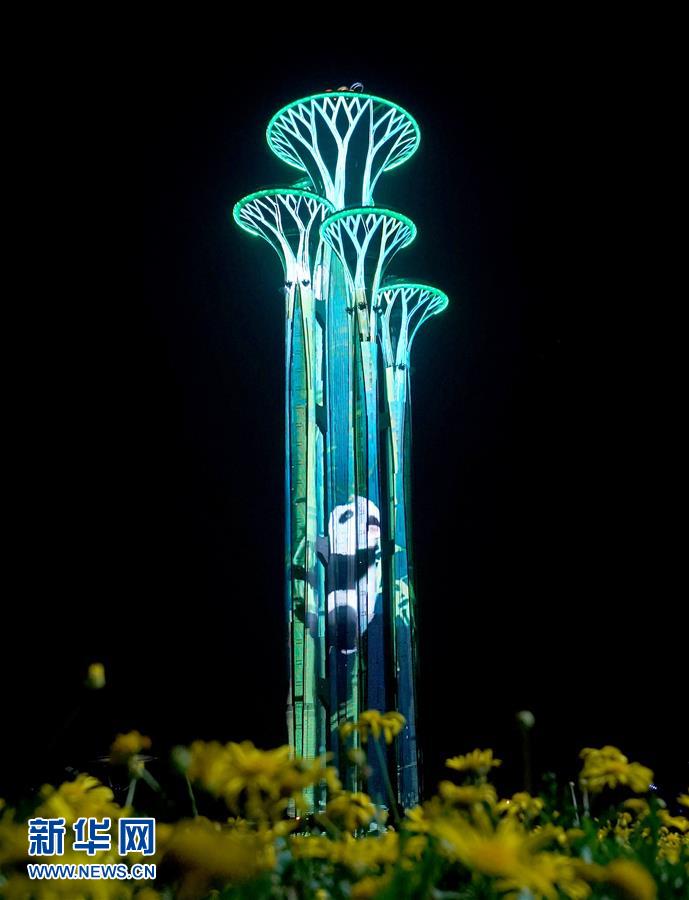 奥林匹克塔上演“空间光影秀”(5月14日摄)。 当晚,一场“空间光影秀”在北京上演。 新华社记者 陈建力 摄