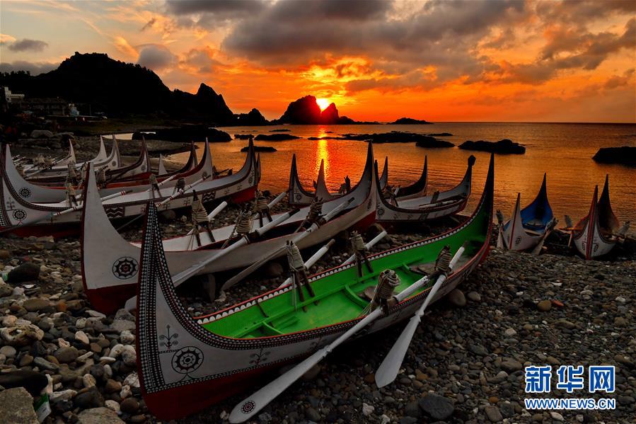 晨曦下的古舟(5月16月摄)。 兰屿位于台湾东部,约45平方公里,是由海底火山喷发隆起而形成的岛屿,岛上因盛产蝴蝶兰而闻名,所以称之为“兰屿”。岛上丘陵起伏,海岸曲折,怪石林立,满目葱茏。 新华社记者 张国俊 摄