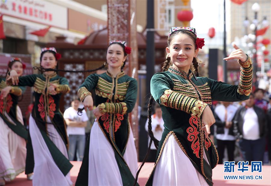 5月19日,演员在活动现场表演舞蹈。 当日,2019年“中国旅游日”乌鲁木齐市天山区分会场活动暨“诚邀四海宾客·共享文化盛宴”文艺演出季启动仪式在乌鲁木齐大巴扎步行街举行。 新华社记者 王菲 摄