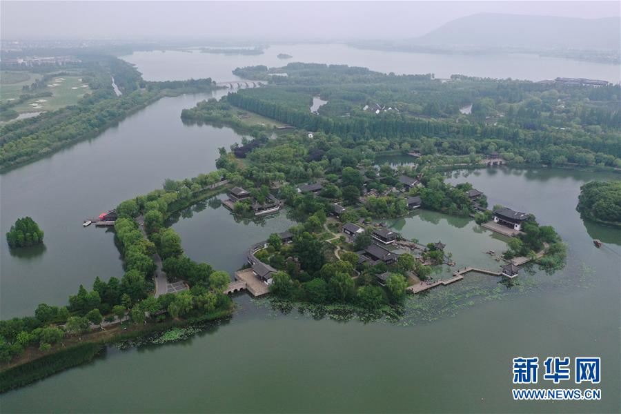 无人机航拍的尚湖风景区景色(5月19日摄)。 太湖风景名胜区重要组成部分——江苏常熟尚湖风景区,是国家5A级景区、国家城市湿地公园。近年来,尚湖风景区依托优美的自然风景,积极打造一流的山水旅游度假胜地。 新华社记者 季春鹏 摄