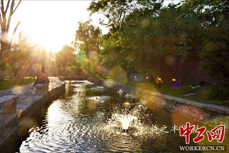 2019年5月21日,走进北京城市中心大栅栏地区的街心花园,这里以森林形态的植物景观为特色,将古建筑包裹在森林之中,仿古凉亭、青砖步道、各类花草环绕着曾经埋入地下几十年的古三里河,仿佛置身江南水乡。工人日报-中工网许之丰摄影报道