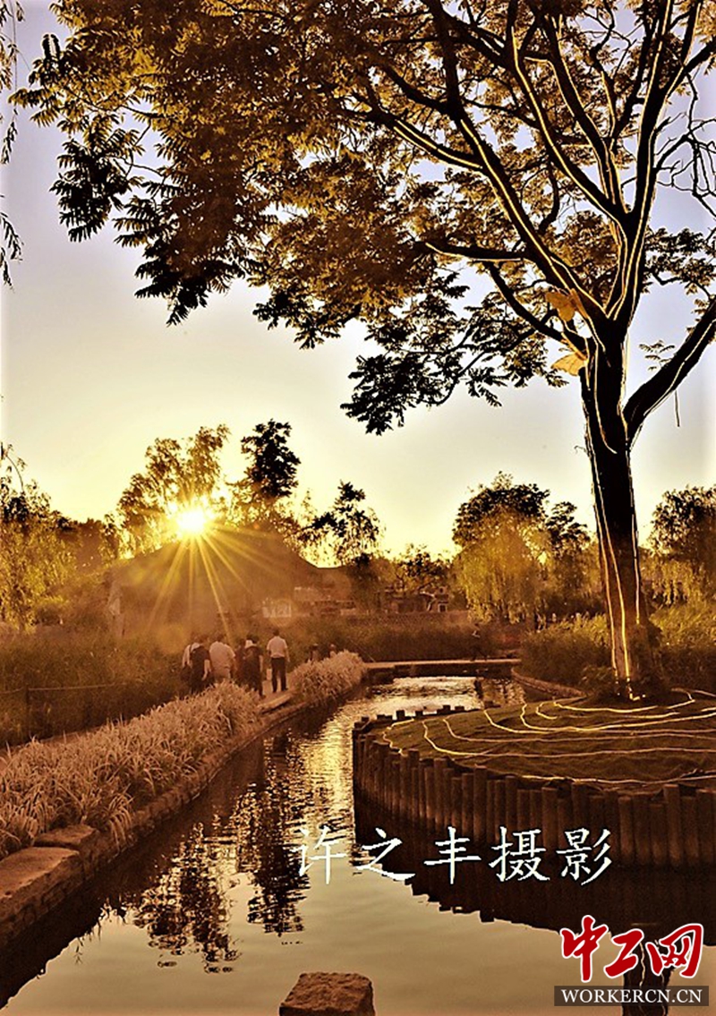 2019年5月21日,走进北京城市中心大栅栏地区的街心花园,这里以森林形态的植物景观为特色,将古建筑包裹在森林之中,仿古凉亭、青砖步道、各类花草环绕着曾经埋入地下几十年的古三里河,仿佛置身江南水乡。工人日报-中工网许之丰摄影报道