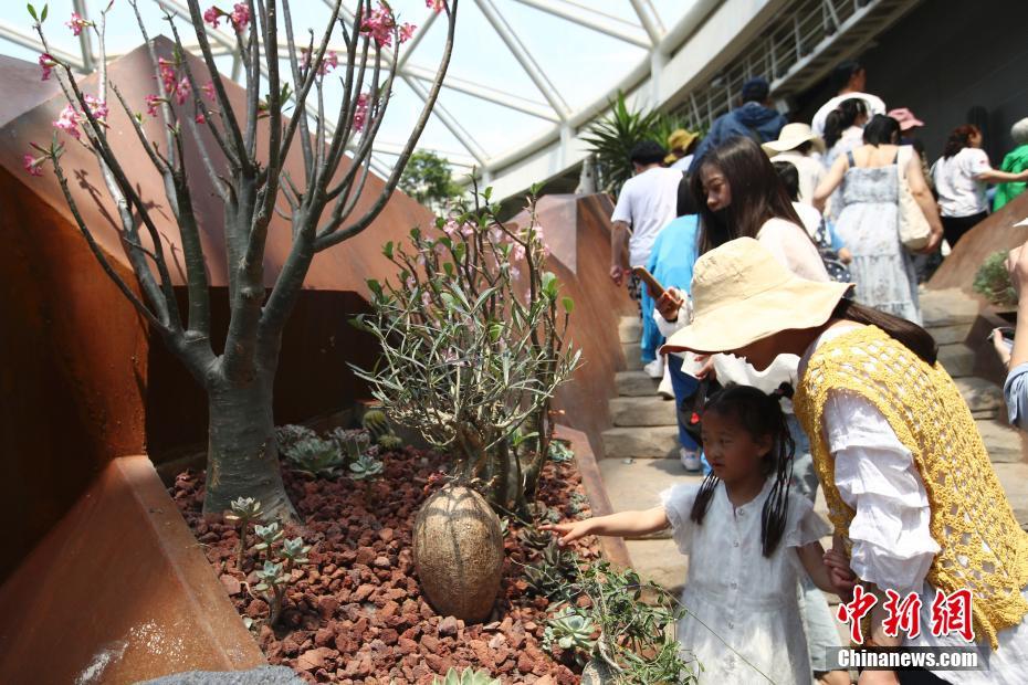 5月22日,一名游客带着小朋友在北京世园会植物馆内参观。当日,京城启动“高烤”模式。北京市气象台于日前发布高温黄色预警,预计22日至25日,北京大部地区日最高气温将达35℃以上,其中23日的局地最高气温可达37℃以上。中新社记者 盛佳鹏 摄