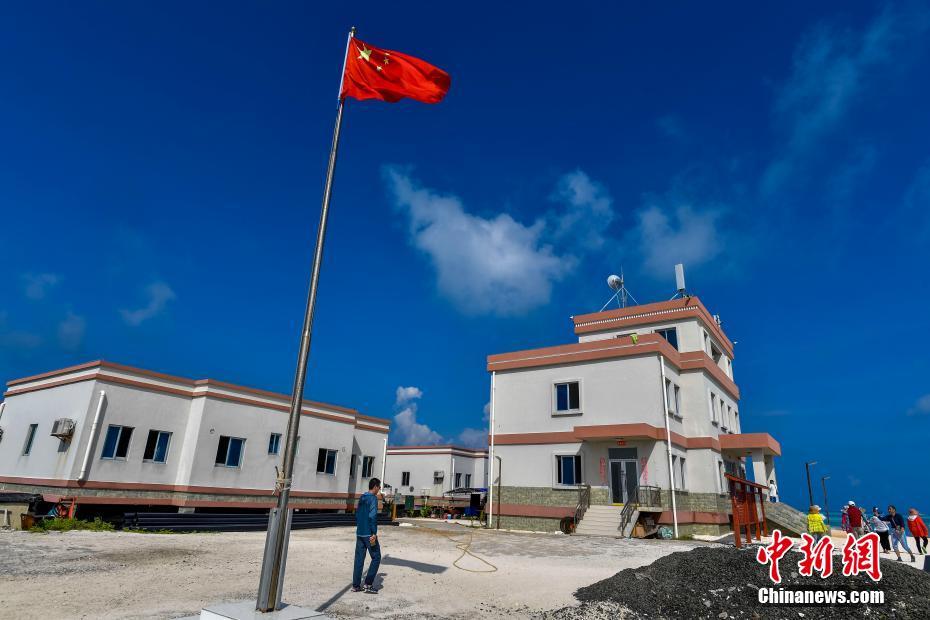 五星红旗在银屿上飘扬。骆云飞 摄