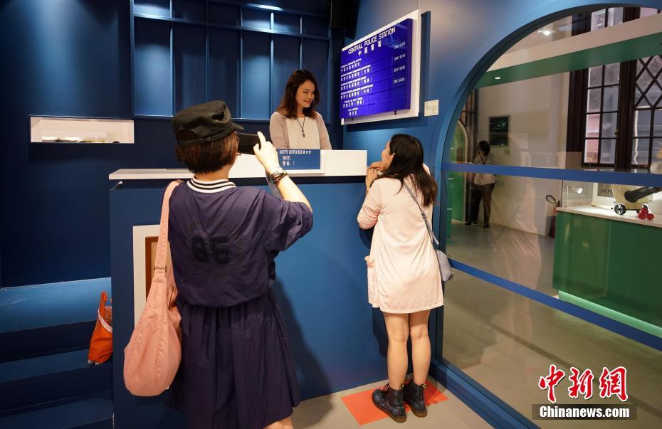 5月26日,香港“大馆”开幕一周年之际,“大馆101”专题展览正式向公众开放。该展览透过展示101件与香港中区警署建筑群(大馆)相关的物品,娓娓道来昔日发生在“大馆”里的各种故事。参观者可以任选角色手册,分别扮演警员、大平绅士、囚犯、狱吏和市民,通过遍布大馆的互动装置,发现不同身份的人物与展品之间的关系,从而发掘“大馆”的精彩故事。图为参观者扮演值班警长和来访市民。中新社记者 张炜 摄