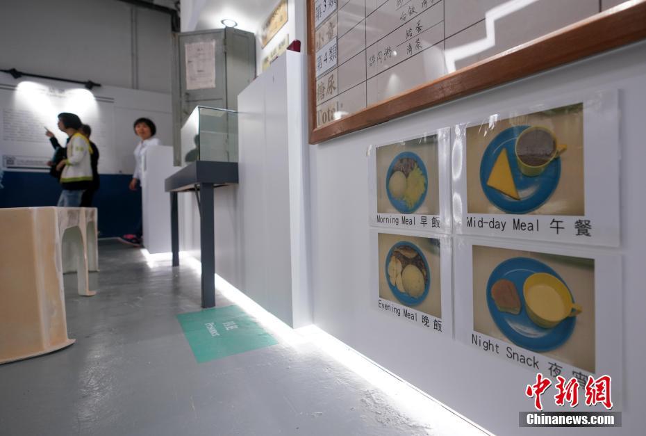 5月26日,香港“大馆”开幕一周年之际,“大馆101”专题展览正式向公众开放。该展览透过展示101件与香港中区警署建筑群(大馆)相关的物品,娓娓道来昔日发生在“大馆”里的各种故事。参观者可以任选角色手册,分别扮演警员、大平绅士、囚犯、狱吏和市民,通过遍布大馆的互动装置,发现不同身份的人物与展品之间的关系,从而发掘“大馆”的精彩故事。图为当年“大馆”囚犯的饭菜,有米饭、面包、奶茶、蔬菜和炸鱼等。中新社记者 张炜 摄