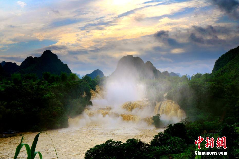 亚洲第一跨国瀑布呈现“黄金瀑布”景观