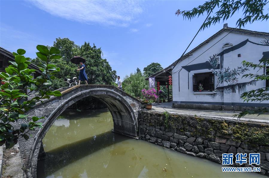 5月29日,潞村村民从宋代单孔石桥“起凤桥”上走过。 新华社记者 徐昱 摄