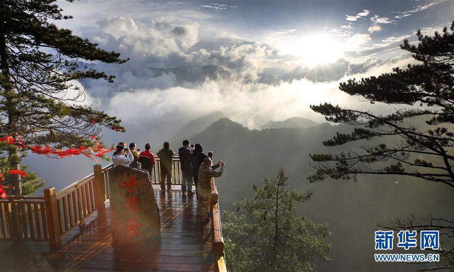 5月30日,游人在五龙洞国家森林公园呼龙台欣赏风景。新华社发(王伟 摄)