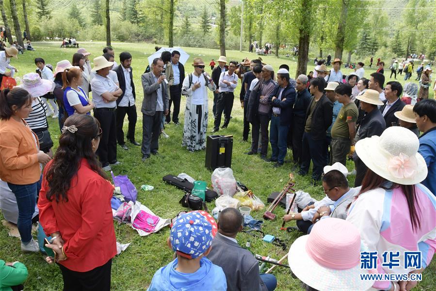 6月1日,参加松鸣岩花儿会的人们在演唱花儿。