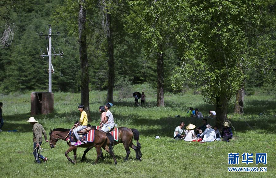 6月1日,小朋友在松鸣岩景区体验骑马。新华社记者 张帆 摄