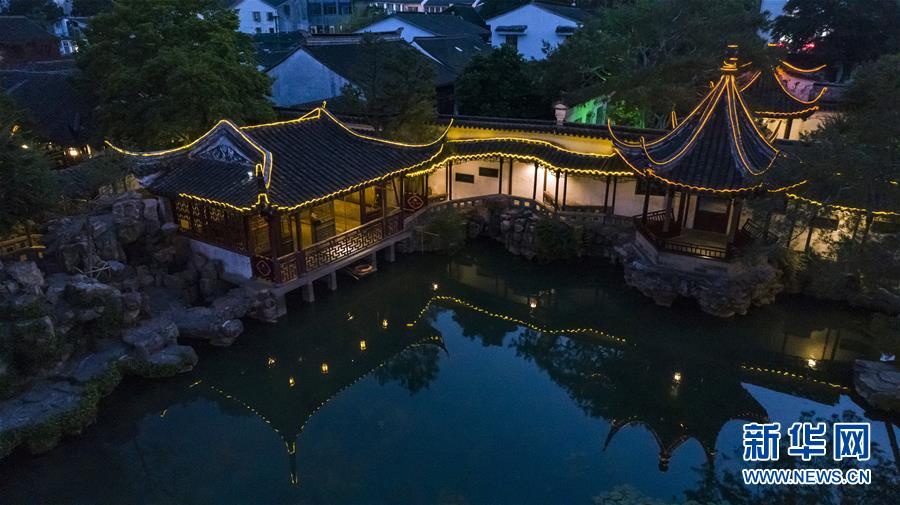 这是5月22日晚拍摄的苏州网师园(无人机拍摄)。网师园是唯一在夜间面向公众开放的苏州园林。 新华社记者 沈伯韩 摄