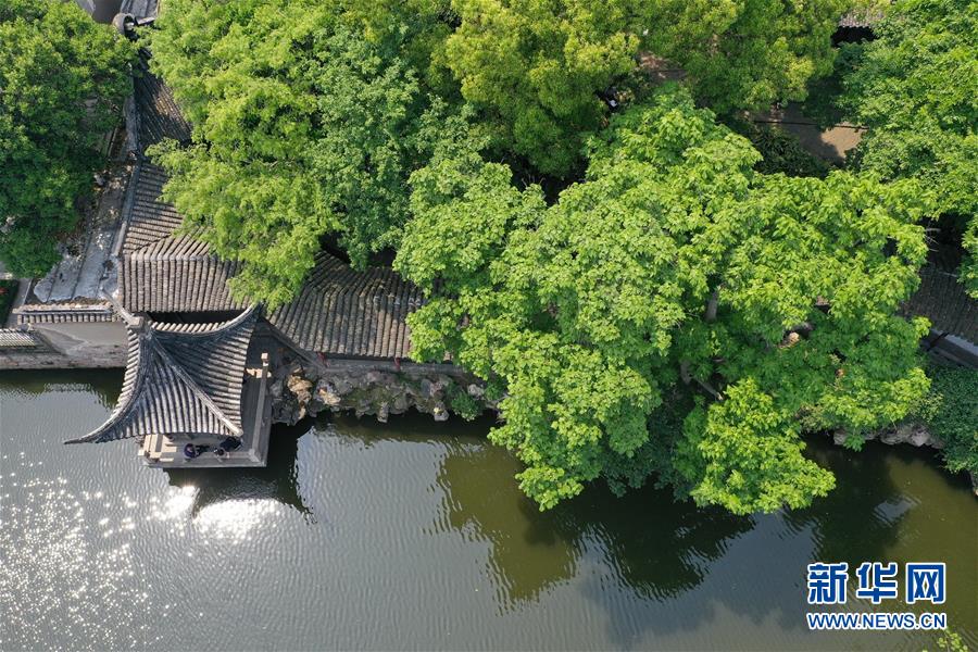 这是无人机拍摄的苏州沧浪亭景色(5月10日摄)。 新华社记者 季春鹏 摄