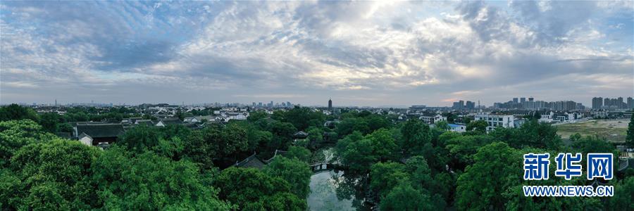 无人机拍摄的苏州拙政园(5月21日摄)。 新华社记者 季春鹏 摄