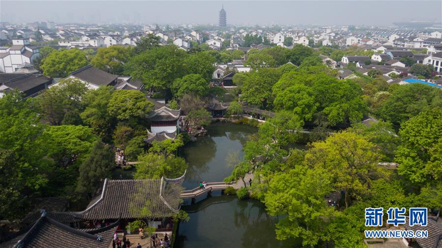 4月17日无人机拍摄的苏州拙政园。 新华社记者李响摄
