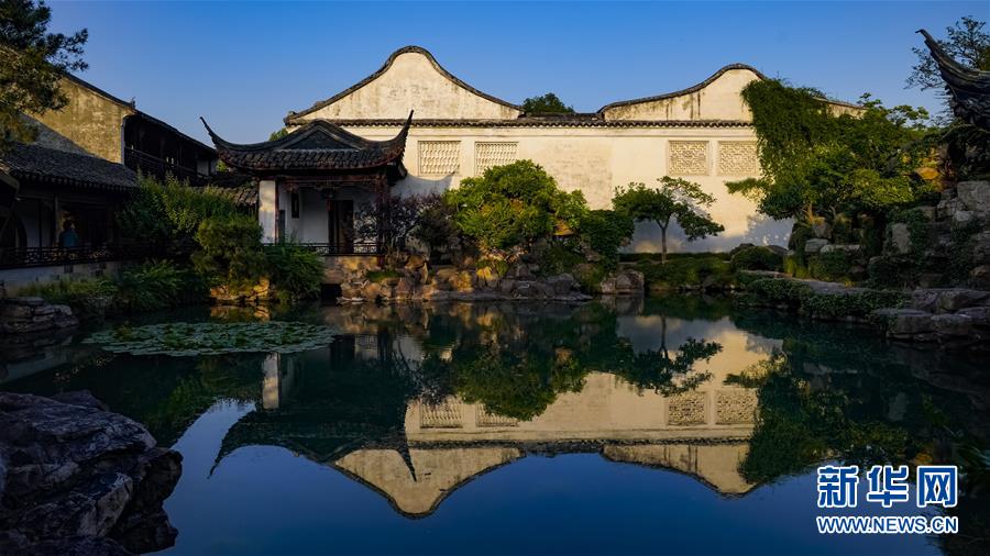 这是5月22日拍摄的夕阳下的苏州网师园。 新华社记者 沈伯韩 摄