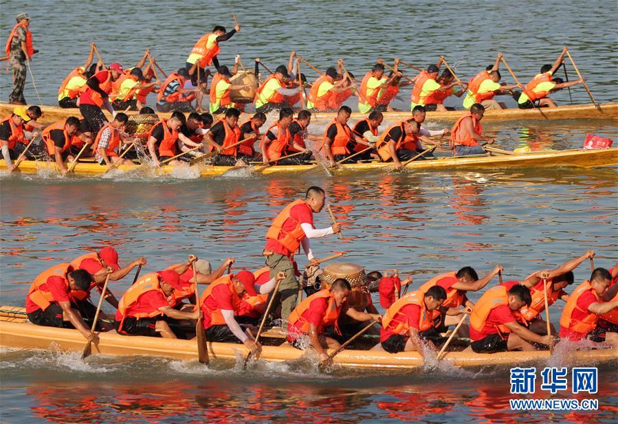 6月3日,龙船在潇水河竞逐。 端午临近,湖南道县在潇水河上举行传统龙船赛,144艘龙船竞逐迎端午。道县端午划龙船历史悠久,“道州龙船赛”2006年被列入湖南省非物质文化遗产名录。 新华社发(何红福 摄)