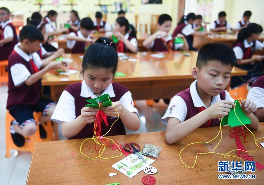 6月4日,洲泉镇洲泉实验小学的学生们在端午民俗课上学习香袋的制作。新华社记者 徐昱 摄 图片来源:新华网