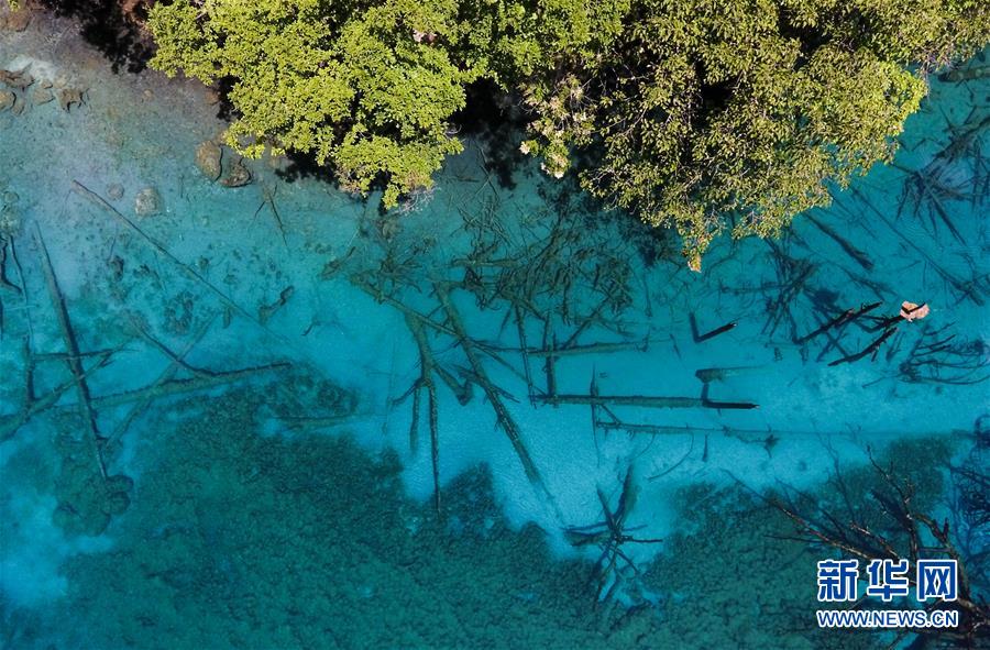 这是九寨沟景区的五花海景点(6月5日无人机拍摄)。