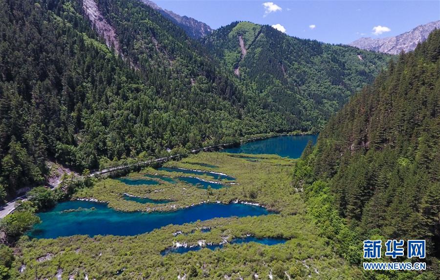 这是九寨沟景区内一景(6月5日无人机拍摄)。新华社记者薛玉斌摄