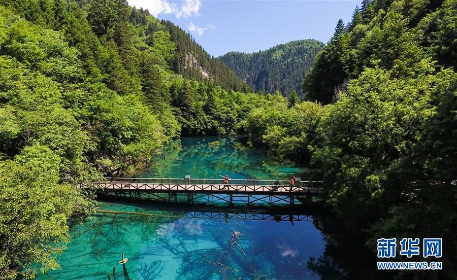这是九寨沟景区的五花海景点(6月5日无人机拍摄)。新华社记者薛玉斌摄