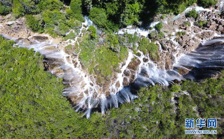 这是九寨沟景区的诺日朗瀑布景点(6月5日无人机拍摄)。 新华社记者薛玉斌摄
