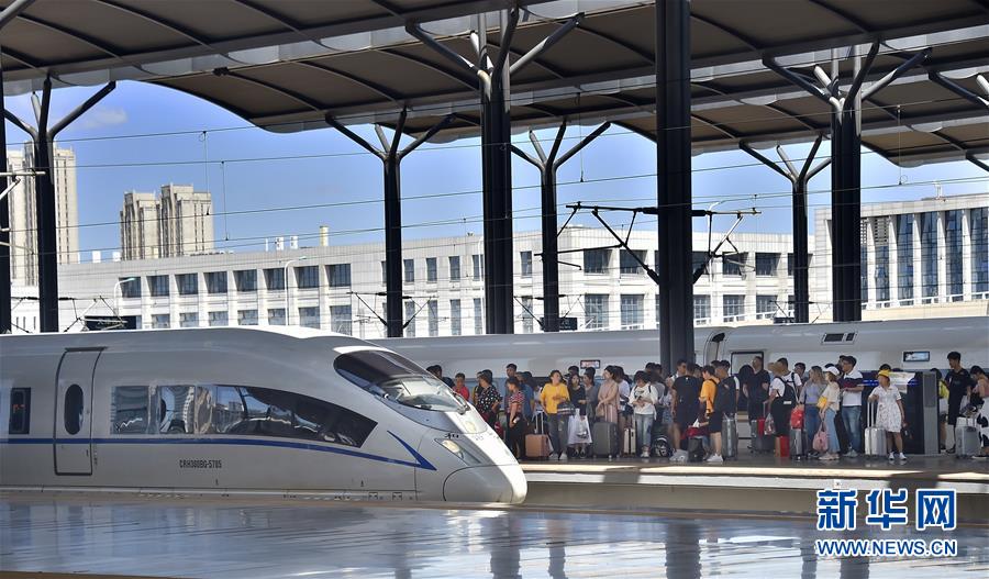 6月9日,旅客在天津西站站台等候乘车。 据悉,全国铁路9日迎来端午小长假返程客流高峰,预计发送旅客1370万人次,加开旅客列车889列。 新华社发(杨宝森摄)