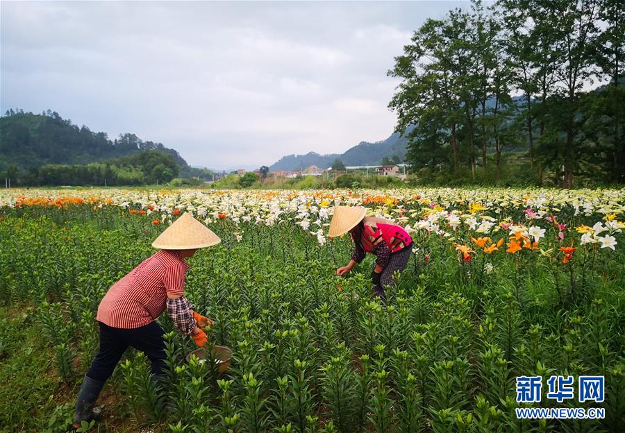 6月8日,农民在贵州省台江县老屯乡百合种植基地里管护百合。新华社记者 杨文斌 摄