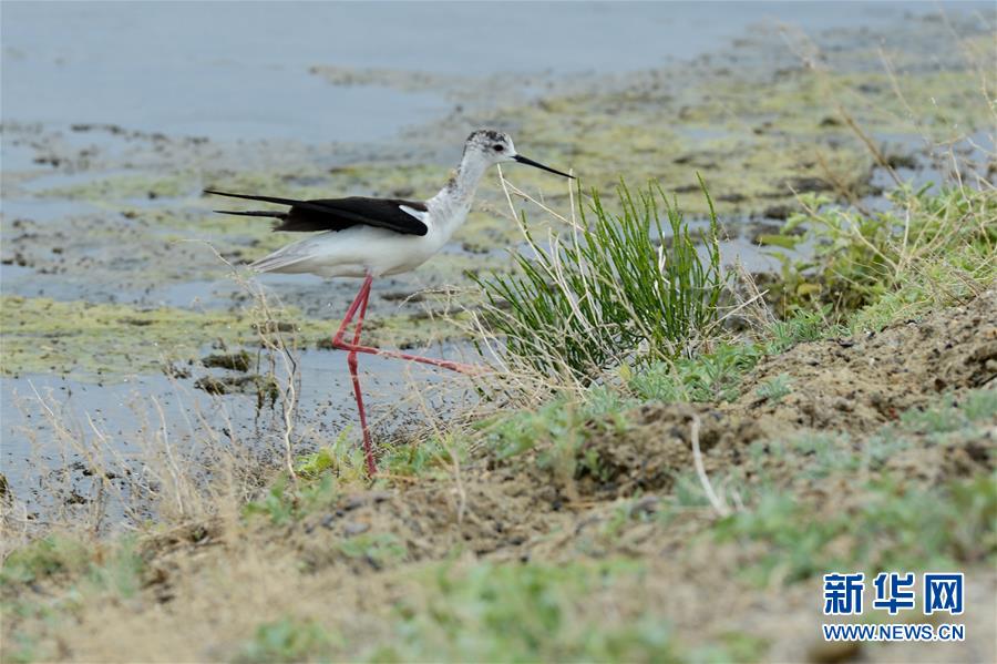 6月9日,一只长腿鹬在新疆乌伦古湖国家湿地公园觅食。 进入夏季以来,在新疆阿勒泰地区的乌伦古湖国家湿地公园,栖息此地的大量迁徙鸟类成为一道靓丽的风景。 新华社记者 丁磊 摄