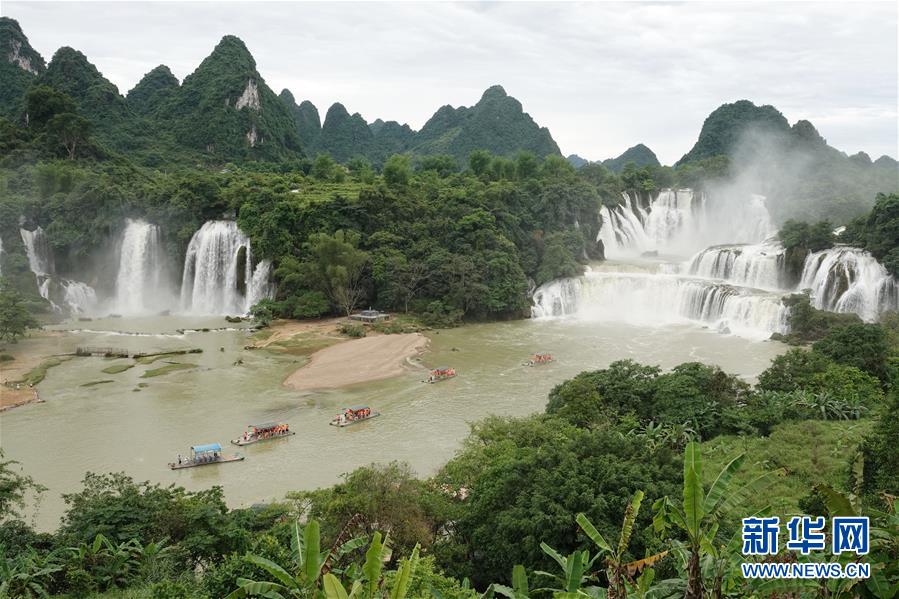 进入6月,由于雨量充沛,位于中国与越南边境的广西崇左市大新县德天瀑布进入最佳观赏期,吸引大批游客前来观赏。德天瀑布与紧邻的越南板约瀑布相连,是亚洲最大跨国瀑布。新华社发(喻湘泉 摄)