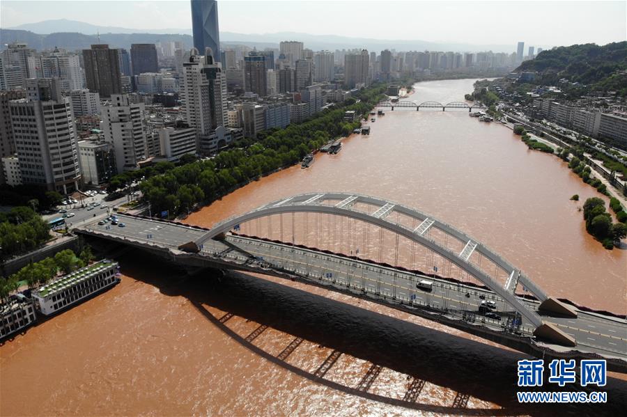 这是黄河兰州段的元通黄河大桥(6月12日无人机拍摄)。新华社记者 范培珅 摄