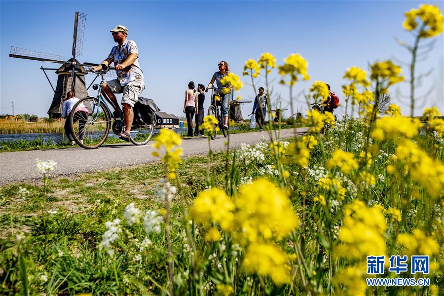 4月22日,人们在荷兰“小孩堤防”风车村游览。 通过不断更新的城镇化可持续发展战略、持续细化的政策措施和项目实施,荷兰在绿色城市建设方面取得了突出成就。荷兰多地以全面整体的方式对交通、能源、建筑、水资源和垃圾系统进行改进,进一步完善城市功能,打造绿色宜居城市。 新华社发(罗宾·乌得勒支摄)