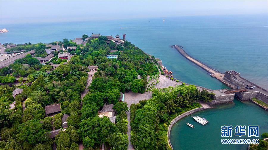 这是2018年6月14日无人机拍摄的山东蓬莱市蓬莱阁及蓬莱水城。 新华社记者 郭绪雷 摄