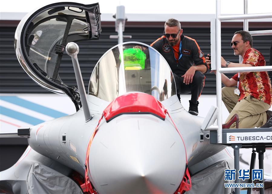 6月20日,在法国巴黎航展上,一名参观者(右)向飞行员了解飞机相关知识。 第53届巴黎-布尔歇国际航空航天展览会(巴黎航展)于17日至23日举行。创始于1909年的巴黎航展是世界上规模最大和最负盛名的国际航空航天展会之一。 新华社记者高静摄