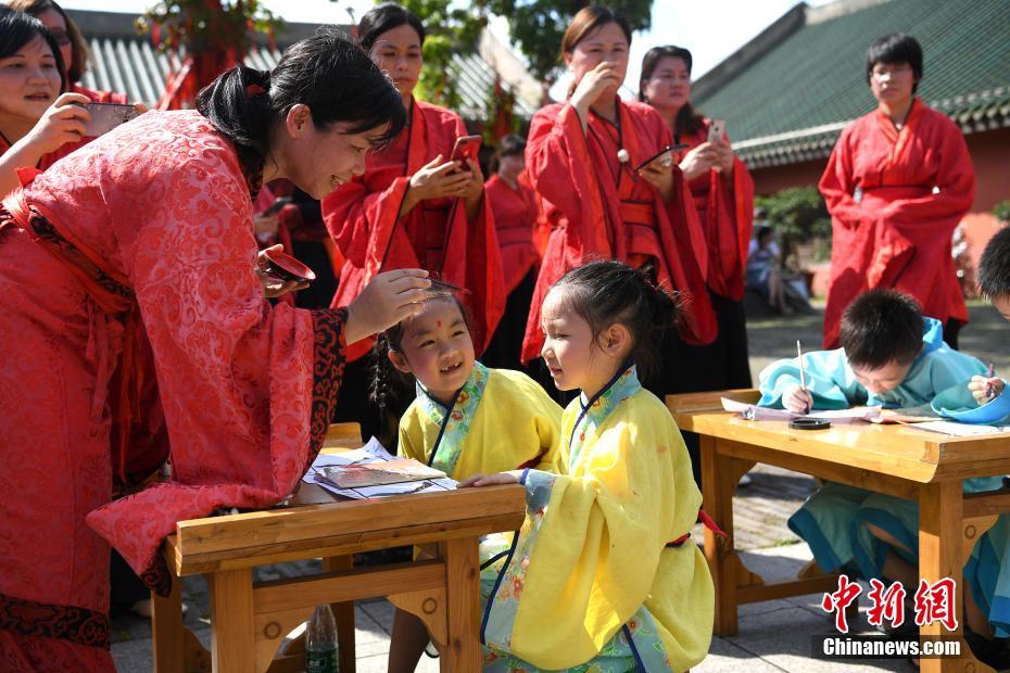 广西上演传统开笔礼 萌童着古装“开笔破蒙”