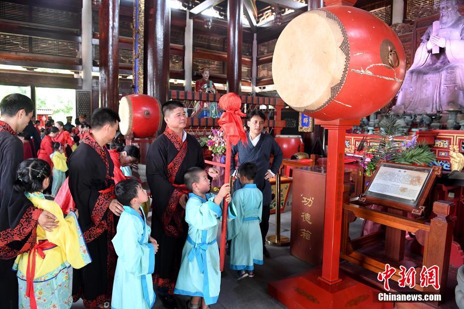 广西上演传统开笔礼 萌童着古装“开笔破蒙”