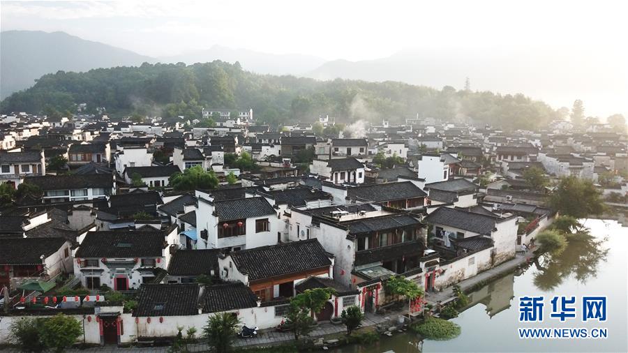 夏日时节,晨光中的安徽省黟县宏村风景区如同画卷一般,美不胜收。