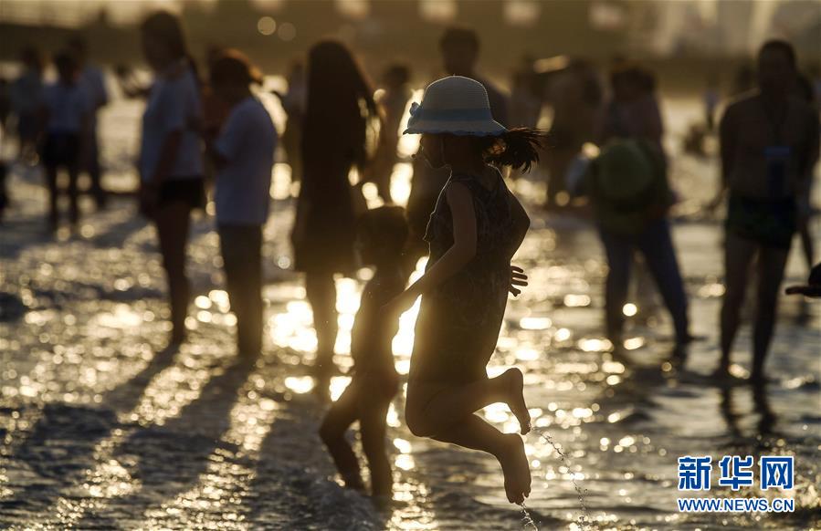 6月25日,游客在广西北海市银滩游玩。 近日,广西北海市银滩进入旅游旺季。 新华社记者 刘莲芬 摄